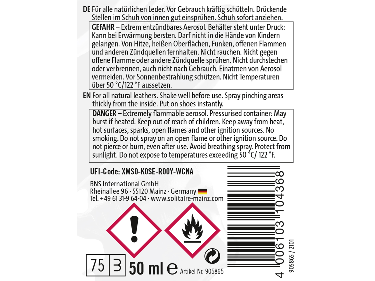 Produktinformationen "SOLITAIRE Shoe Stretch Lederdehnung 50ml"