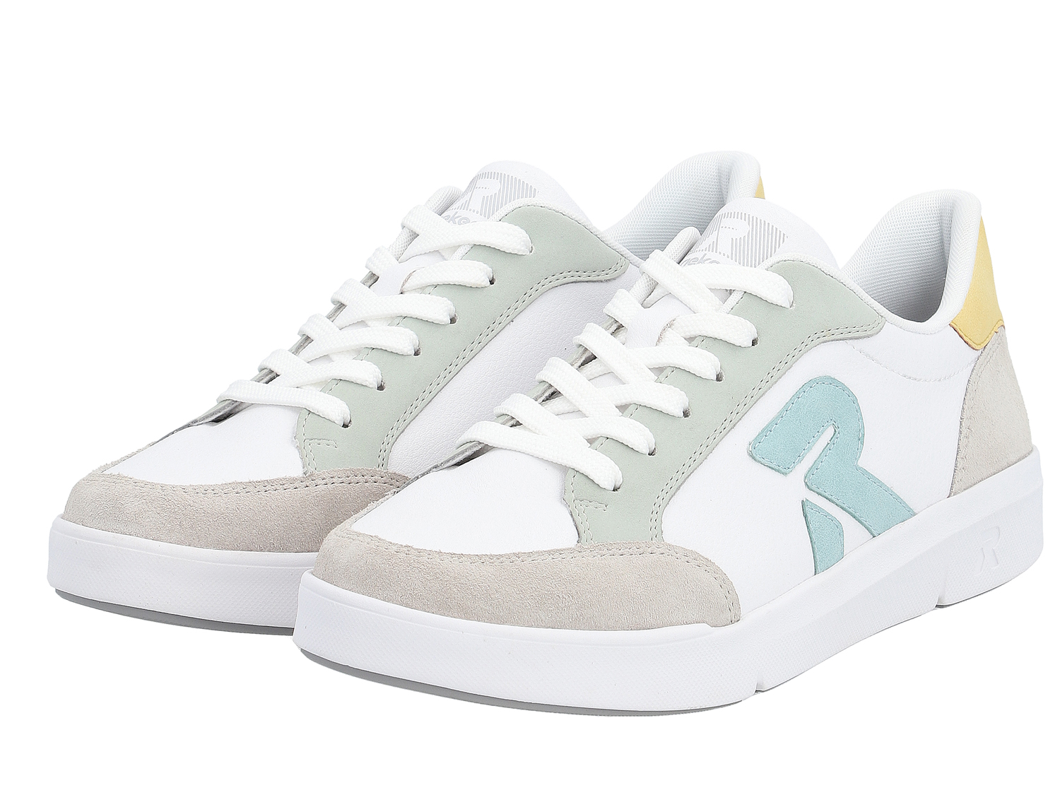 Die coolen Styles lassen dich den Alltag vergessen! Diese lässigen weißen Rieker Sneaker für Damen aus Glattleder sind ein Fashion-Segen für die Füße. Durch die weiße Schnürung ist der Schuh auch ideal anpassbar. Die super leichte und flexible Sohle verwöhnt die Füße darüber hinaus bei jedem Schritt. Mit der gepolsterten und herausnehmbaren Einlegesohle ist noch mehr Komfort garantiert. Dank der atmungsaktiven Innenfütterung aus Microvelour ist idealer Tragekomfort garantiert. Let´s go!