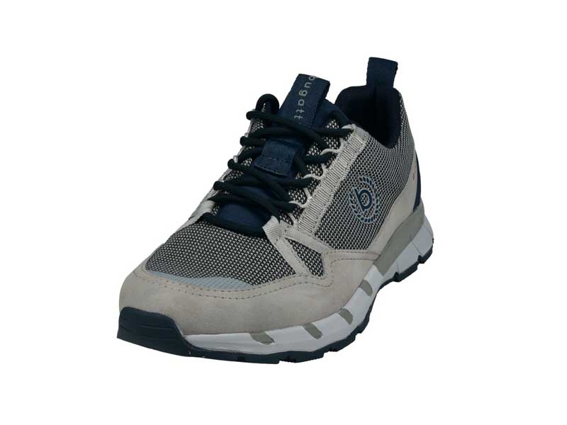 Bequeme Passform, sportliches Design, der modische Schnürer in Dunkelblau mit weicher Einlage und Memory-Funktion lässt, dank seiner weißen Keilsohle und ergonomischen Passform den Fuß entspannen, während die Texturkombination und das bugatti-Logo an der Seite für einen coolen Touch sorgen.