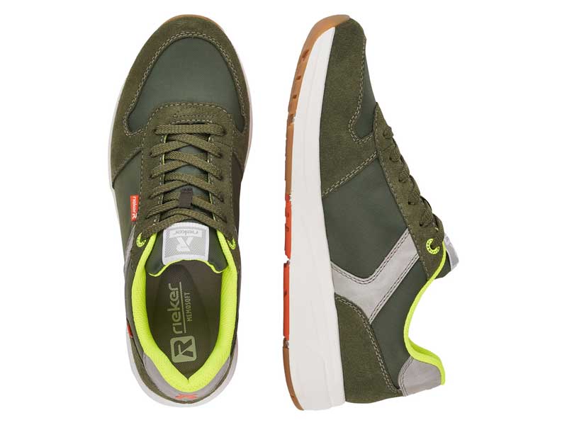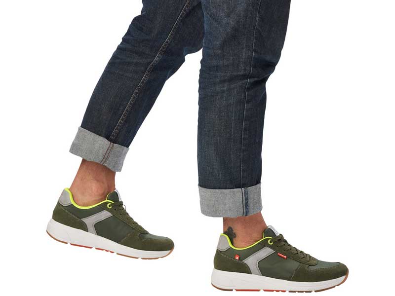Modisch und lässig das geht mit diesem blauen R-EVOLUTION Schnürschuh von Rieker mit weisser Sohle. Das leichte und atmungsaktive Innenfutter hüllt den Fuß gemütlich ein, während die besonders weiche und flexible Sohle jeden Schritt optimal abdämpft. Ein weiteres Komfort-Feature ist die lose Soft-Einlegesohle. So lässt es sich laufen!